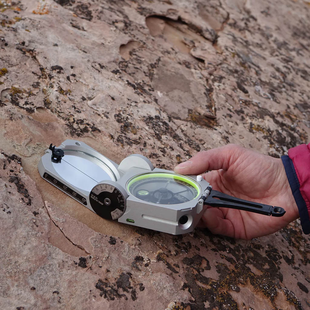 Una herramienta de mapeo universal. El Geo Transit puede tomar medidas del ángulo de inclinación y el azimut de inclinación al mismo tiempo. ¡Excelente para la recopilación de datos internacionales!