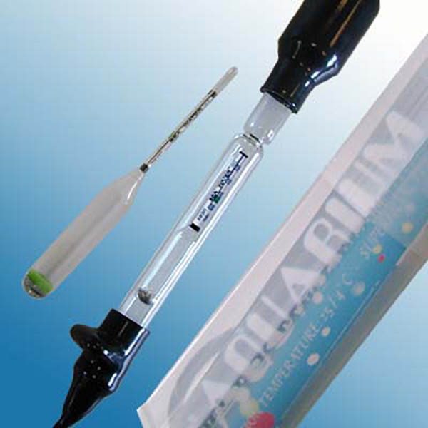 Hidrómetro Alla France de precisión para agua de mar en pipeta de vidrio, en un rango de : 1.000-1.030, unidad : Sp.Gr., div. : 2, temp. de calibración : 25°C, longitud mm : 380 y en estuche transparente con gancho de suspensión.